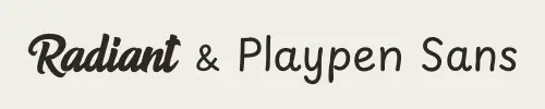 A lendületes kalligráfiájú Radiant vizuális súlya jól illik a címekhez, míg a Playpen Sans barátságos és kézműves megjelenése a hosszabb szövegek olvashatóságáért felel.