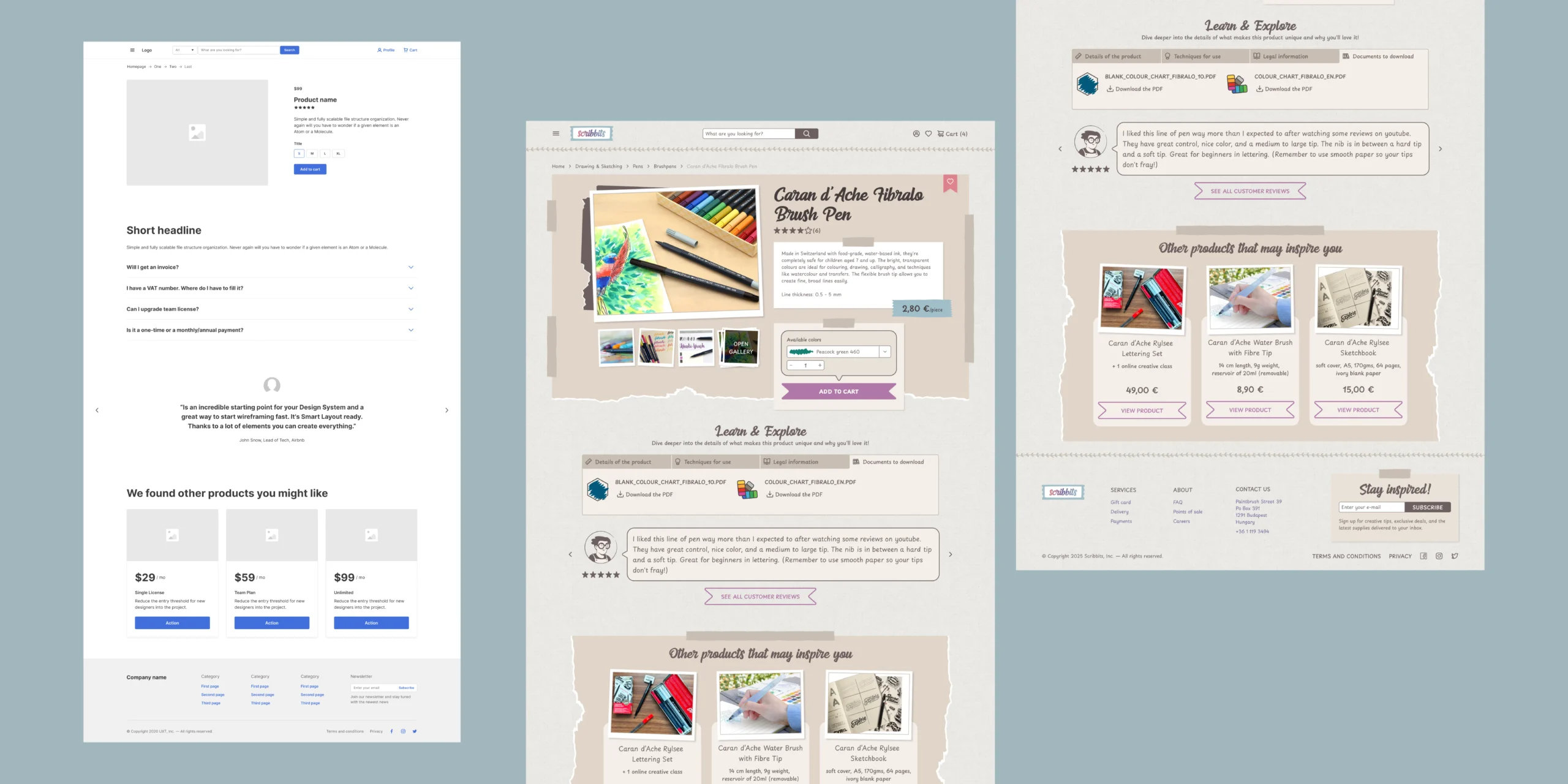 Minden esetben a papírszerű megjelenés és a ceruzával rajzolt formák az uralkodóak, így organikussá és természetessé téve a designt. A cél, hogy a látogató úgy érezze mintha egy fizikai albumot lapozna, miközben az oldalt böngészi.